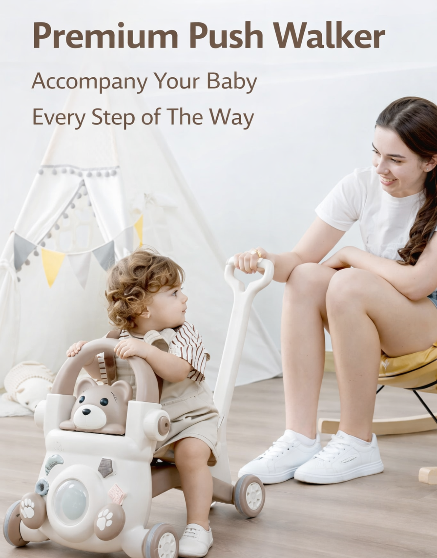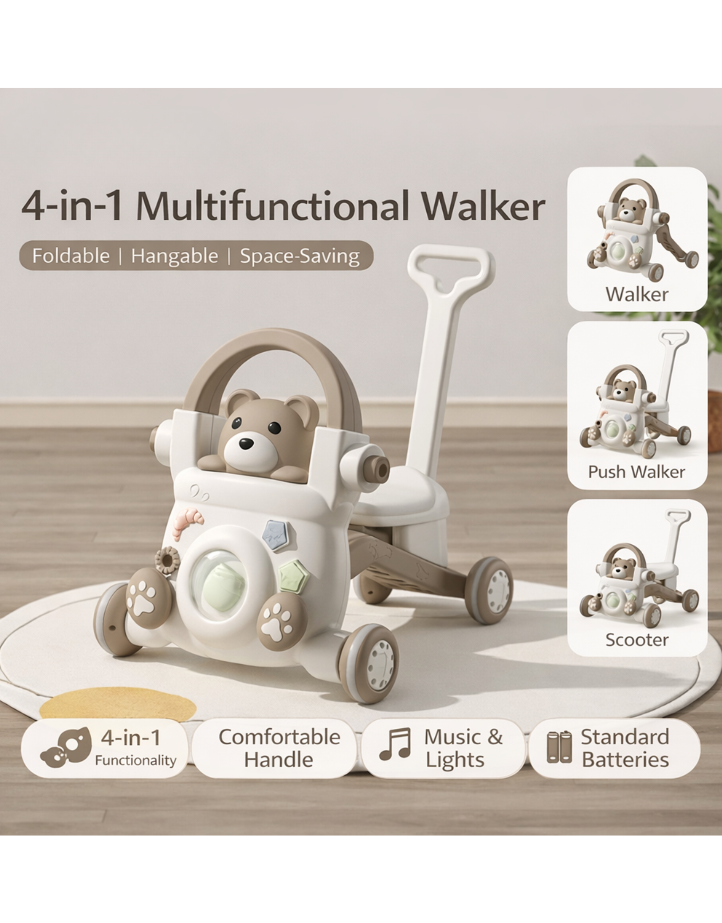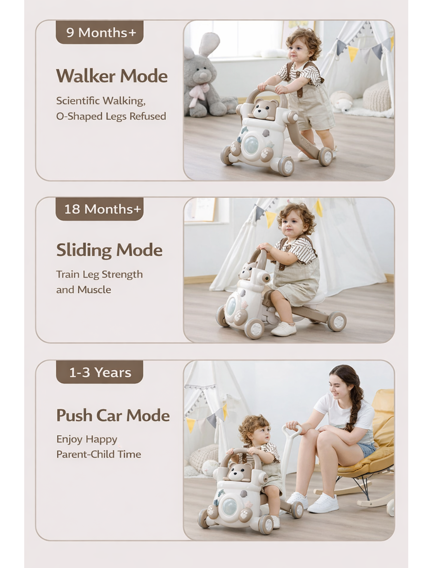 The 3 in 1 Baby Walker is designed to grow with your child, offering multiple play and mobility modes in one smart design. Featuring a triangular support structure for stability, this walker can be used as a ride-on, slide, push car, and walking aid. With adjustable speed control, anti-grip wheels, and non-slip soft rubber grips, it ensures safe and confident movement for little explorers.