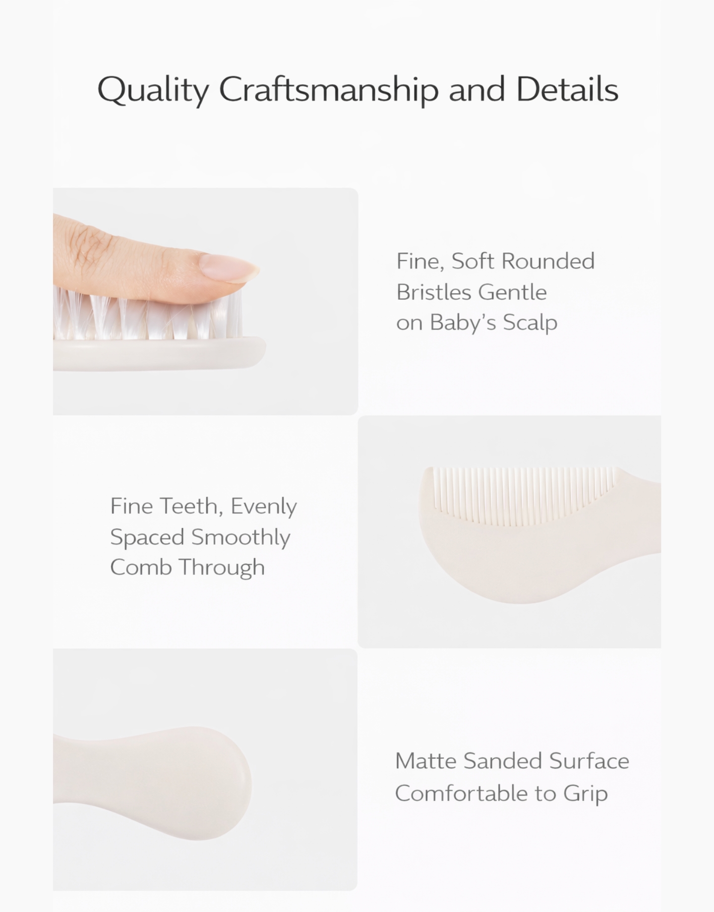 Includes 1 soft baby hair brush and 1 gentle comb