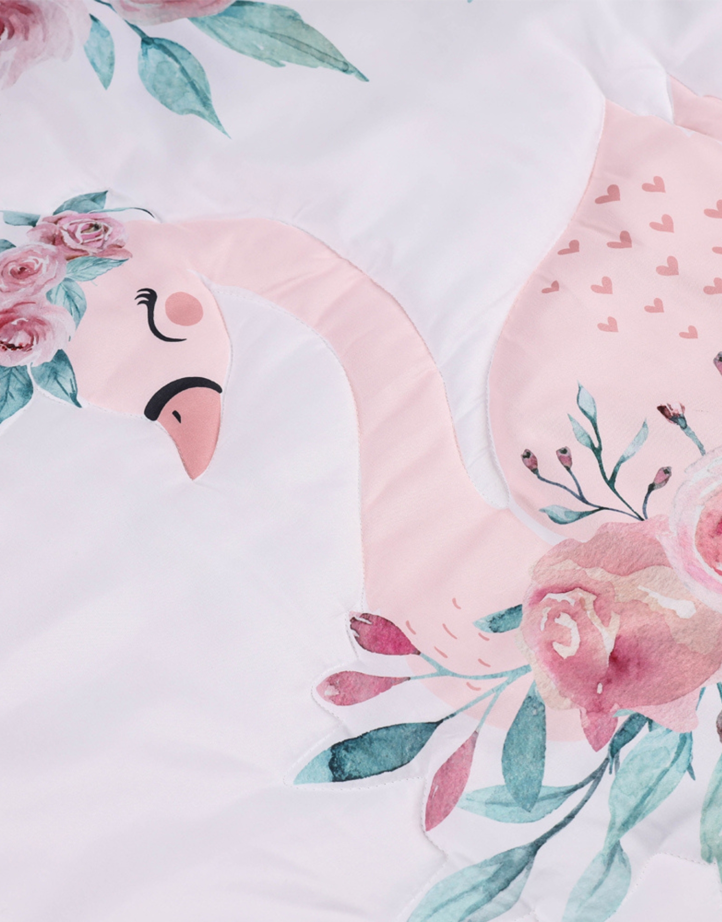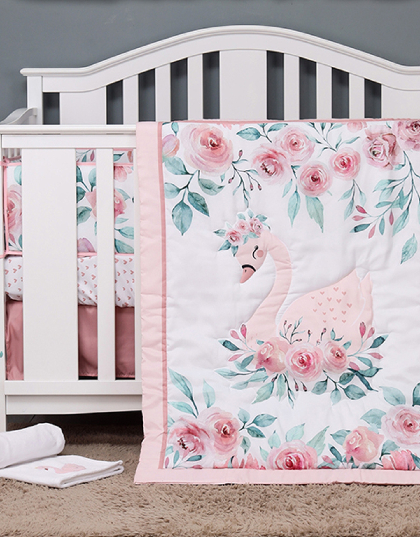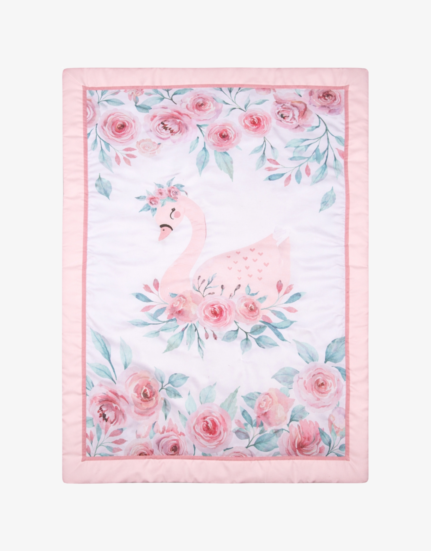 At the heart of this set is the majestic swan comforter, luxuriously soft and plush, offering warmth and tranquility for your little one. Delicate details and soothing colors create a peaceful sleeping environment, perfect for restful naps and bedtime routines.