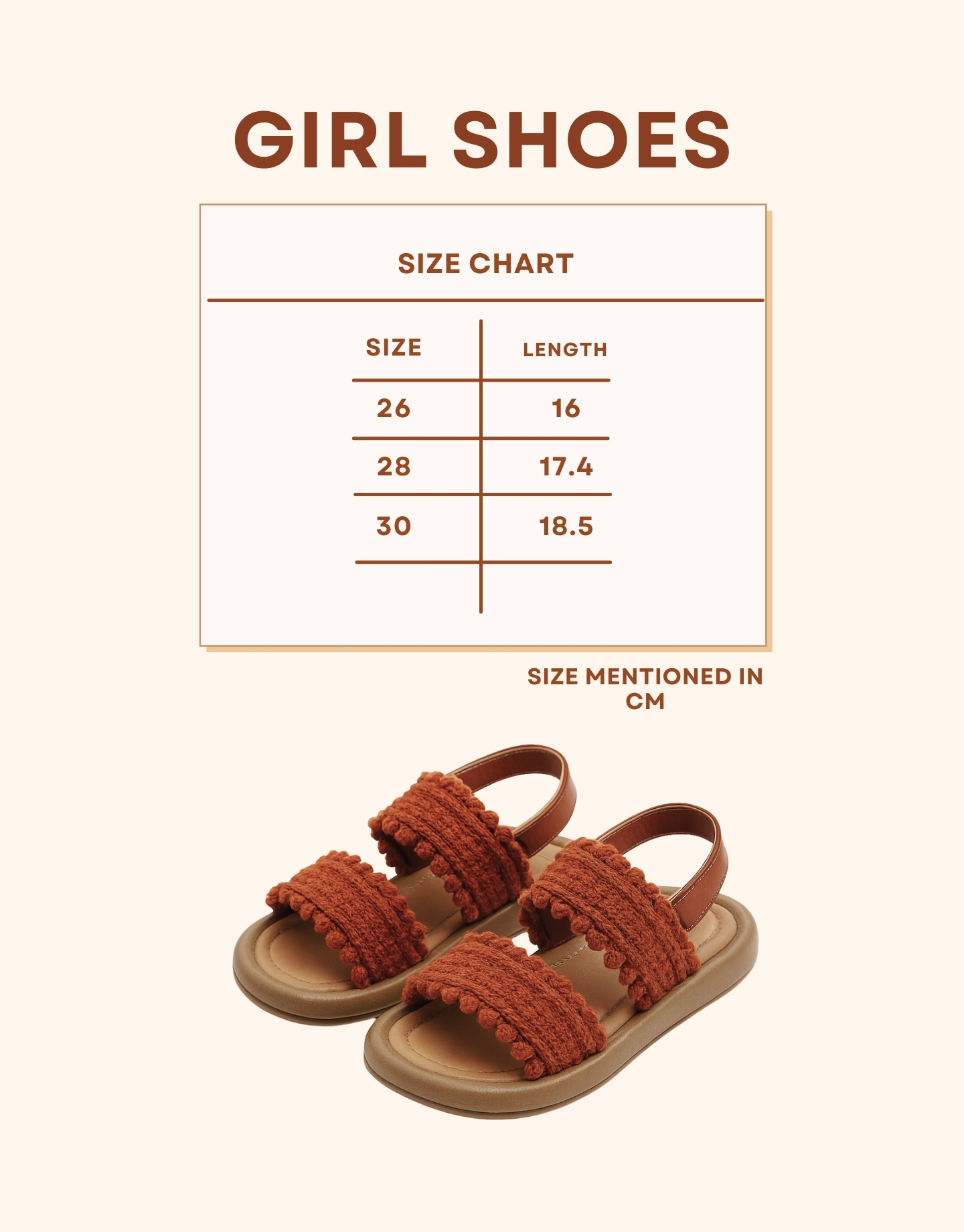 Step out in comfort and style with our Girl Sandal in Brown, a perfect blend of elegance and everyday wear. Made with soft, durable materials and a non-slip sole, these sandals ensure a secure and comfortable fit for little feet.