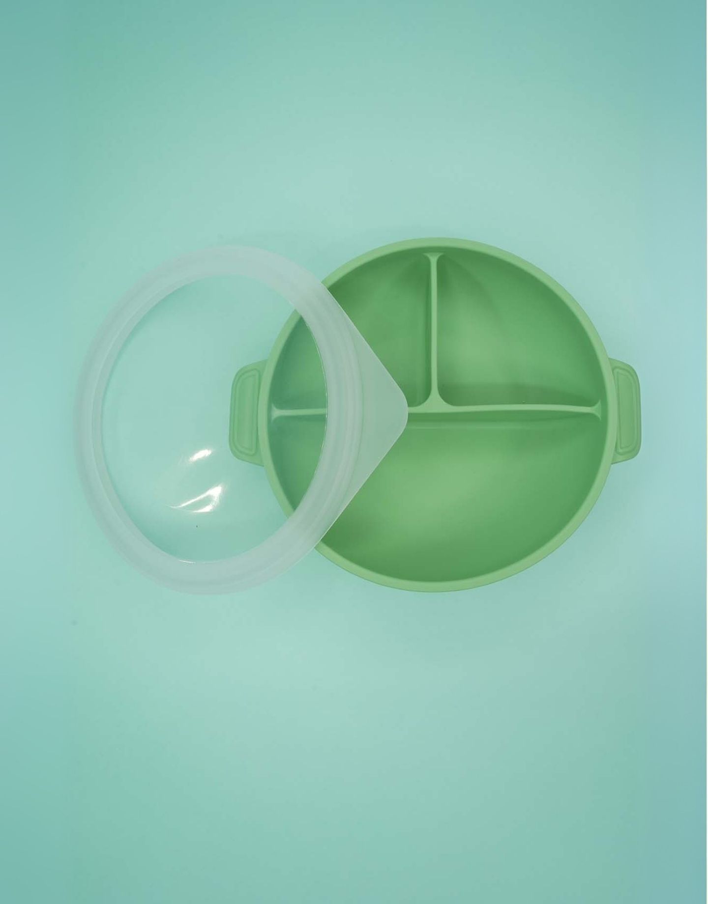 Mess-Free Mealtime – Green Silicone Plate with Lid