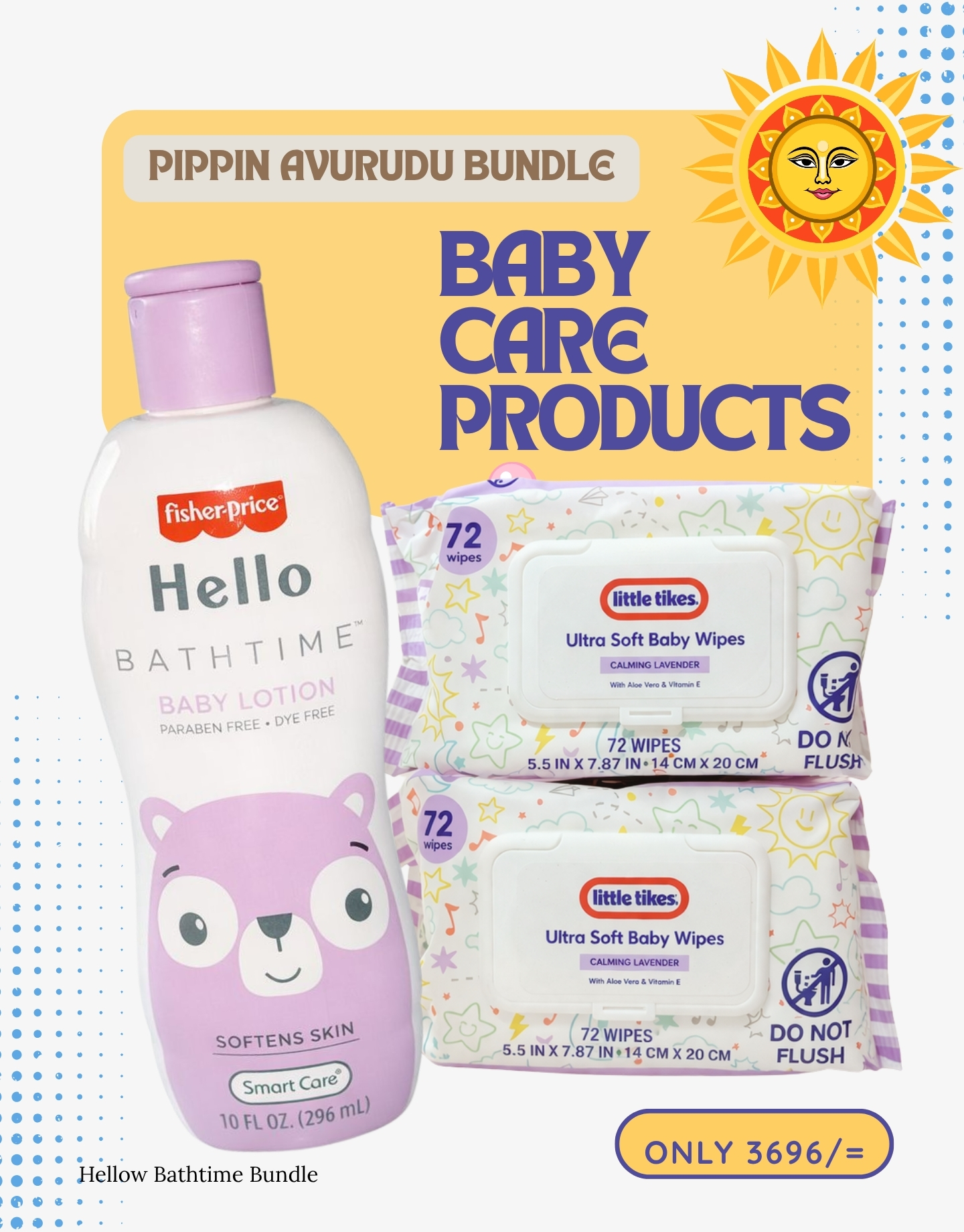 Make your baby’s routine gentle and nourishing with the Hello Bath Time Bundle. This carefully curated set includes Fisher-Price Hello Bath Time Body Lotion (296ml) and two packs of Little Tikes Baby Wipes (72pcs each)—perfect for keeping your baby clean, soft, and well-moisturized.