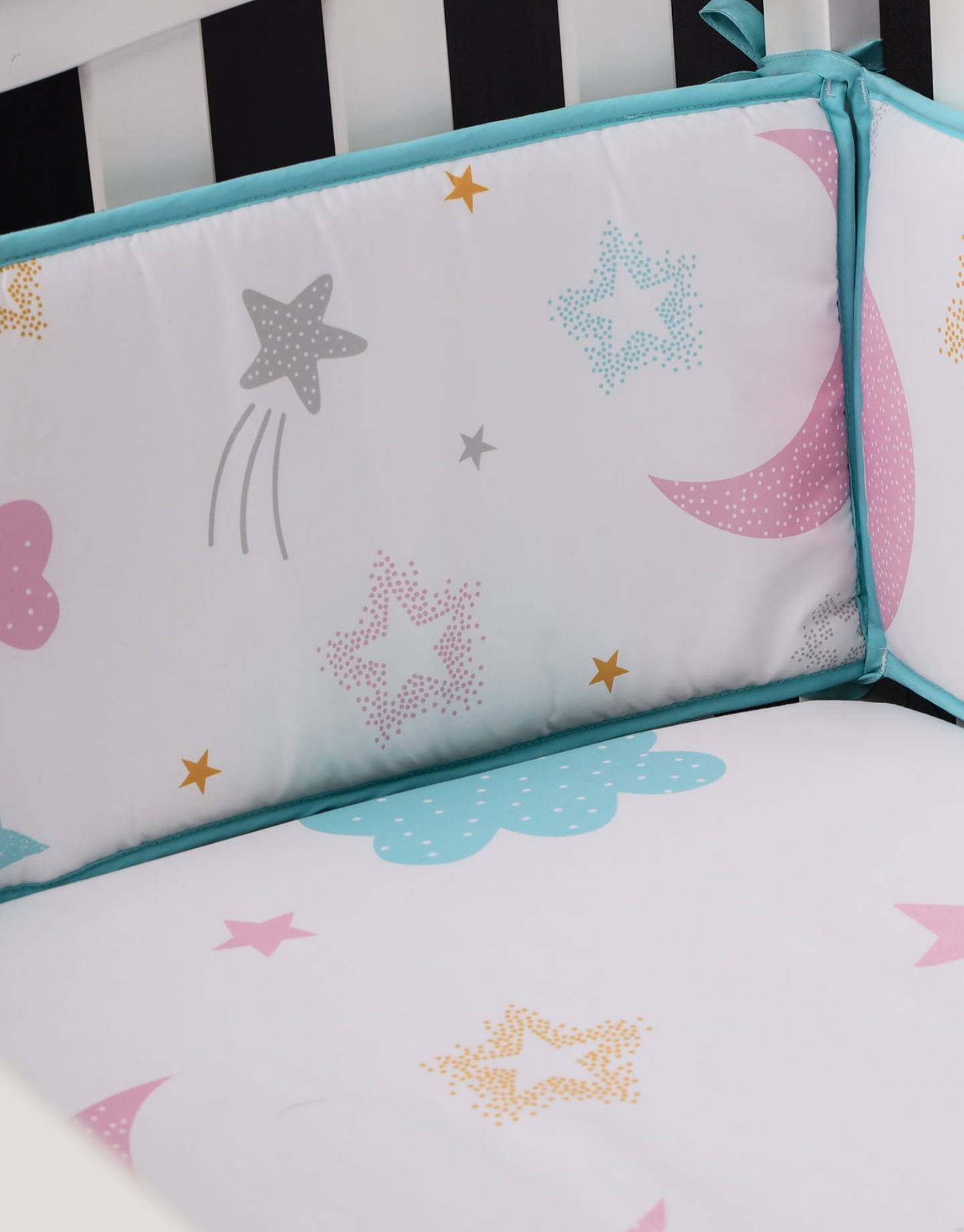 Create a serene and protected sleep environment with the Baby Crib Bumpers – Moon. Designed with soft padding and baby-friendly fabric, these bumpers help cushion your little one from accidental bumps while resting or sleeping. Featuring a calming moon-themed design, they add a gentle, soothing touch to your baby’s nursery décor.