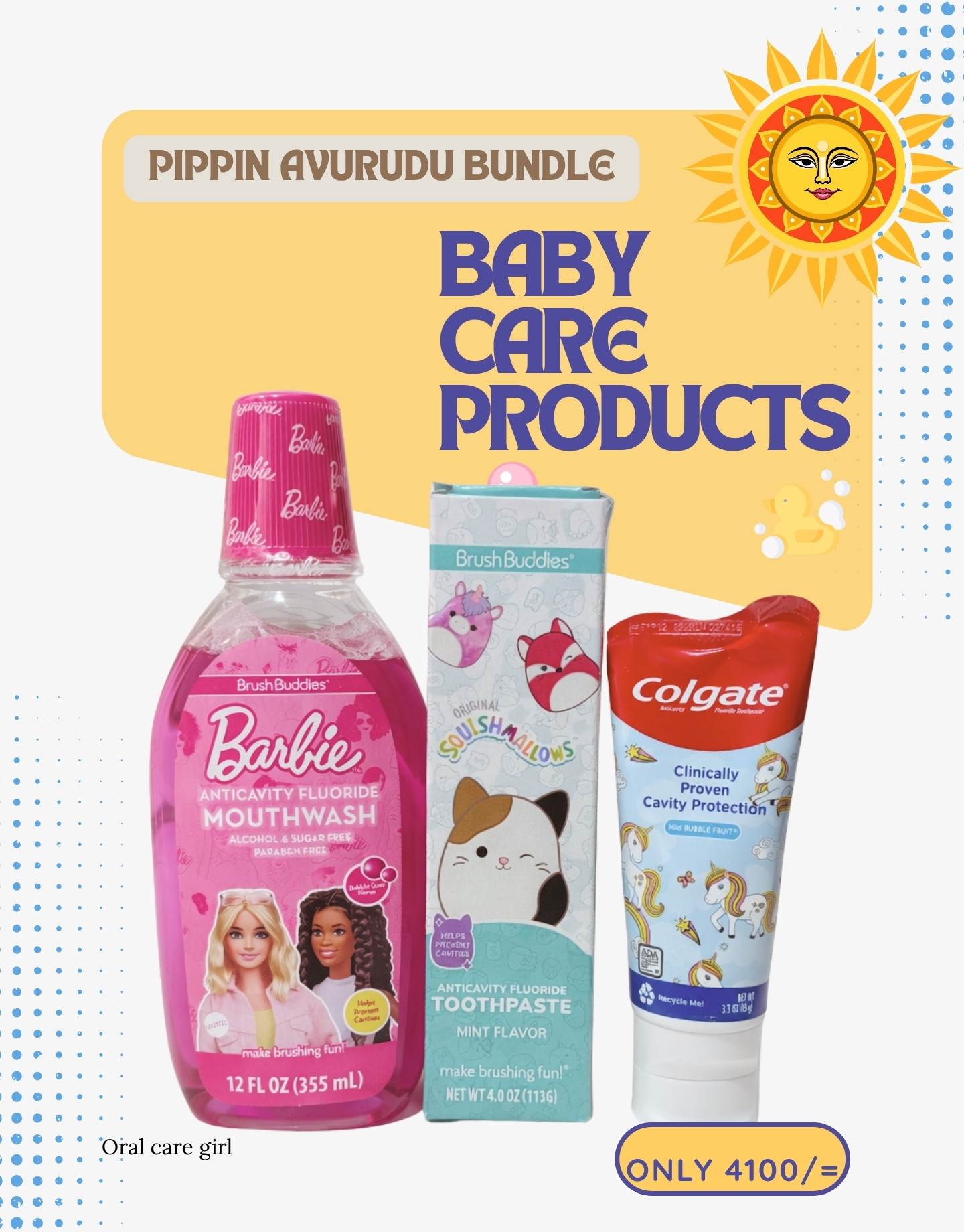 Make brushing fun and effective with our Oral Care Bundle – Girl, thoughtfully curated for little ones. This bundle includes Brush Buddies Barbie Mouthwash, Brush Buddies Toothpaste, and Colgate Cavity Protection Toothpaste—perfect for building a complete and healthy daily oral care routine.