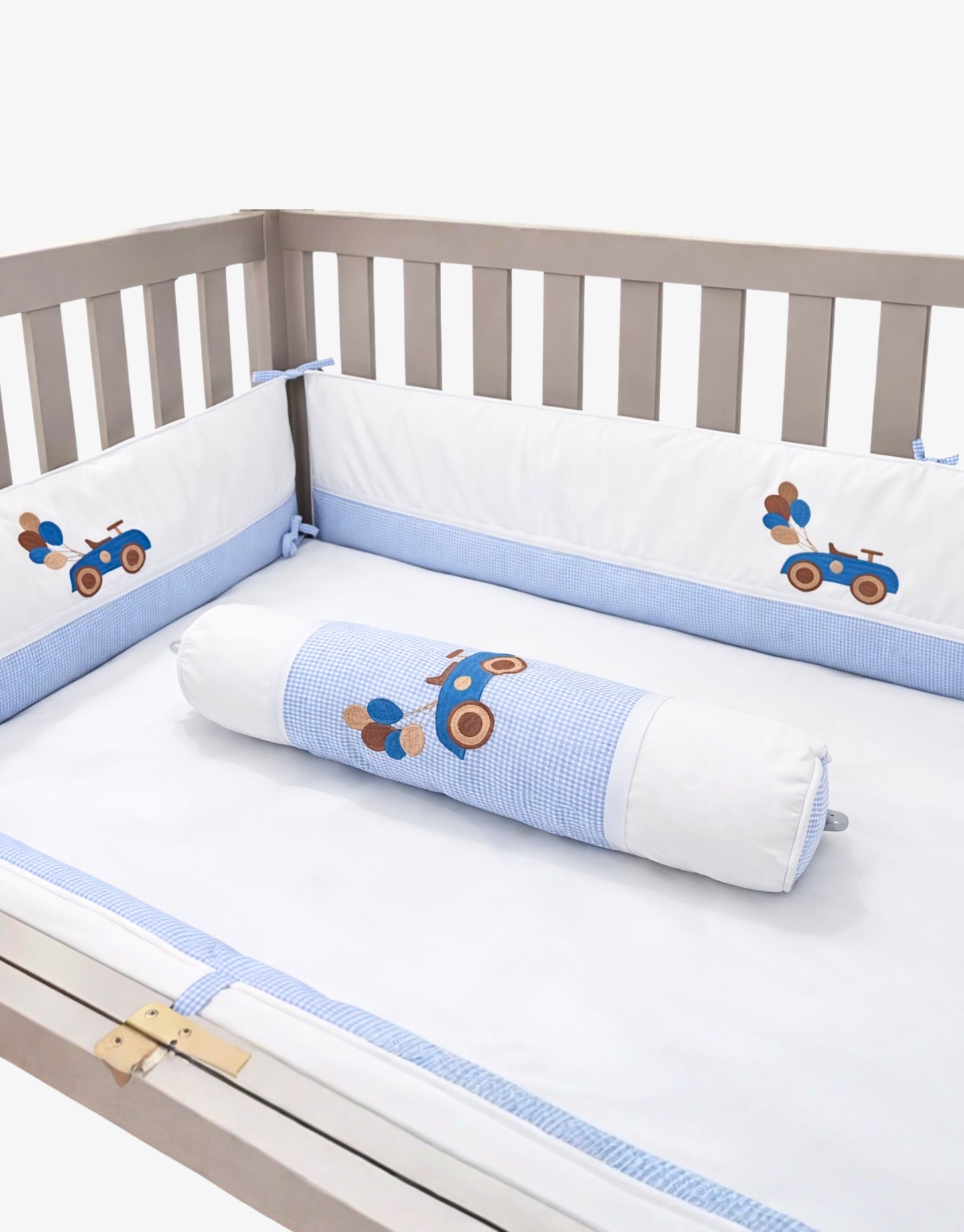 Roller Pillow Cover – Little Vroom | Baby Cot Linen Collection
