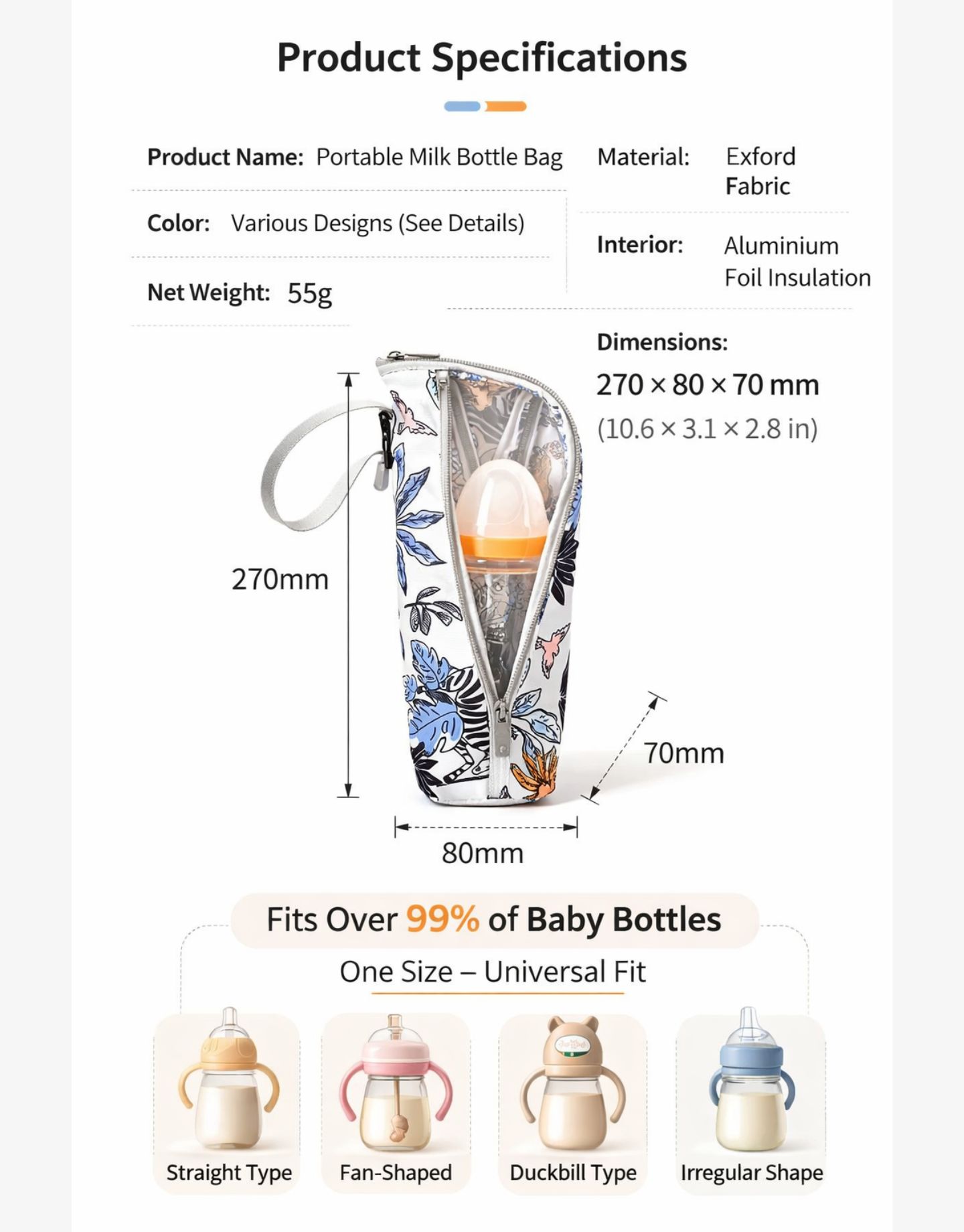 Compact yet spacious enough to fit standard baby bottles, it features a convenient zipper closure and easy-carry handle for on-the-go parents. Whether you’re storing warm formula or chilled breast milk, this thermal bottle bag ensures your baby’s feed stays fresh and ready.